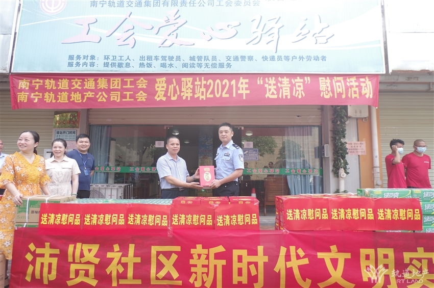 近日,持續(xù)高溫天氣給堅守一線的戶外工作者帶來嚴(yán)峻“烤”驗,為積極推進(jìn)“我為群眾辦實事”實踐活動走深走實,9月10日上午,由南寧軌道交通集團(tuán)工會、南寧軌道地產(chǎn)集團(tuán)工會牽頭,攜同南寧軌道城市發(fā)展公司工會、軌道地產(chǎn)物業(yè)公司工會及那洪街道黨工委、沛賢社區(qū)在金凱路沛友巷工會愛心驛站組織開展“送清涼”慰問活動,南寧市總工會技協(xié)辦副主任阮杰,經(jīng)開區(qū)工會工委副主任易蘭新,交警十大隊教導(dǎo)員駱明等同志出席活動。