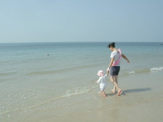 海灘上留下了無數(shù)指尖大小的小孔隙,出于好奇,我蹲下來靜靜地觀察,發(fā)現(xiàn)有小小的螃蟹從小孔隙里爬出來,象我一樣好好沐浴燦爛陽光、溫暖海風(fēng);有些頂著米粒大的沙團(tuán)推出小孔隙,原來是小螃蟹寶寶在造穴,多勤勞呀,從小就養(yǎng)成了愛勞動的習(xí)慣;最好玩的是好不容易逮著一只螃蟹寶寶放在手心任其橫行霸道,直癢得我開懷大笑……..