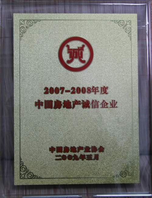 熱烈祝賀中房集團南寧房地產(chǎn)開發(fā)公司榮獲2007-2008年度中國房地產(chǎn)誠信企業(yè)
