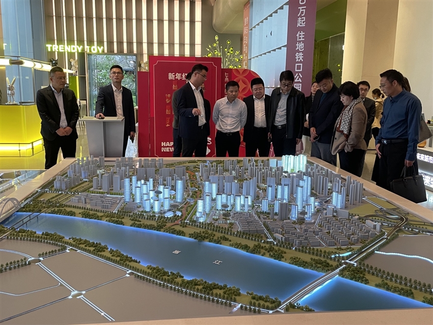 2023年2月2日下午,南寧軌道交通集團(tuán)黨委書記、董事長黃鐘暉,黨委副書記、總經(jīng)理譚文舉,黨委委員、軌道地產(chǎn)公司黨委書記、董事長張世高,軌道地產(chǎn)公司總經(jīng)理?xiàng)铌上取Ⅻh委副書記、副總經(jīng)理睢濤一行蒞臨五一中路片區(qū)站城一體化綜合改造項(xiàng)目一期——南寧未來城市項(xiàng)目實(shí)地參觀,在華潤置地華南大區(qū)廣西片區(qū)公司總經(jīng)理遲海等人陪同下走進(jìn)南寧未來城市項(xiàng)目,參觀了周家坡地鐵公園、5300畝TOD國際生態(tài)新城展覽館、未來城市項(xiàng)目沙盤和樣板間。黃鐘暉對未來城市項(xiàng)目發(fā)揮“百日百戰(zhàn)”的攻堅(jiān)精神、拿地135天逆勢開盤的開發(fā)效率、及連續(xù)三個(gè)月蟬聯(lián)南寧市銷售冠軍的良好成績給予了高度評價(jià),對全體工作人員所做的工作和付出給予了充分肯定,黃鐘暉指出,要將該片區(qū)構(gòu)建成為南寧市TOD綜合智慧社區(qū)的城市更新范本,努力將項(xiàng)目打造成為高質(zhì)量出行、高品質(zhì)生活和高價(jià)值區(qū)域的全國“軌道+城市更新”標(biāo)桿。一同參觀人員均表示非常期待項(xiàng)目江南區(qū)帶來更高端、更美好的生活方式,同時(shí)也要讓更多的南寧市民了解美好的生活、更融洽的鄰里關(guān)系、舒適的人居環(huán)境“軌道+”模式。